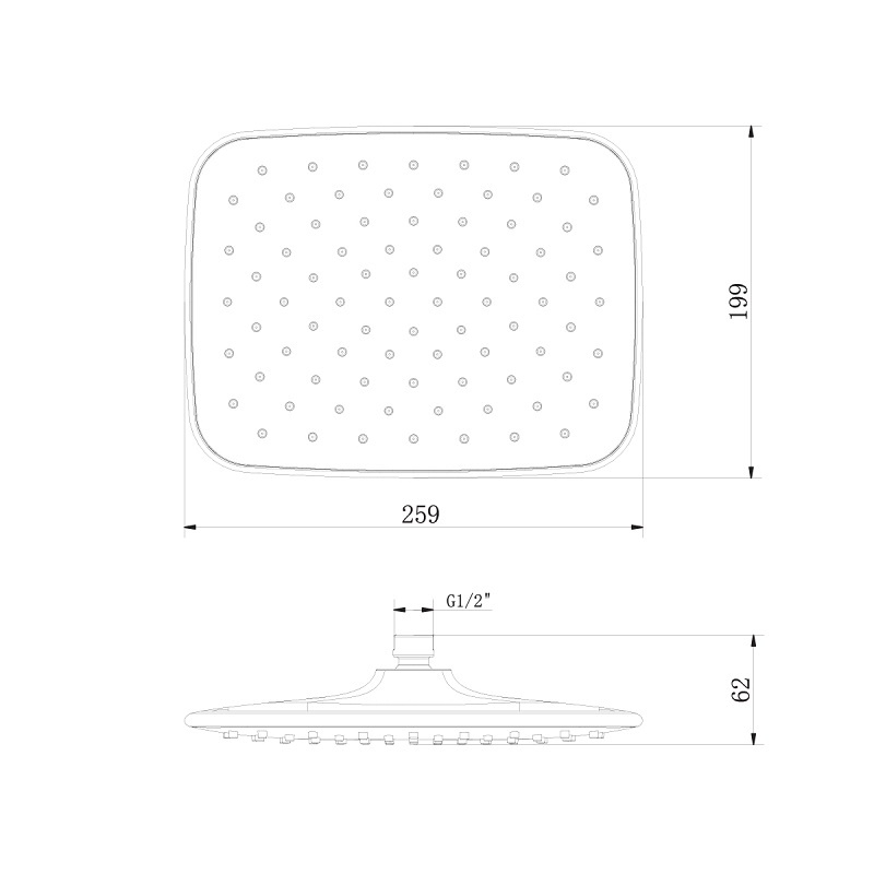 Размер верхнего душа, см