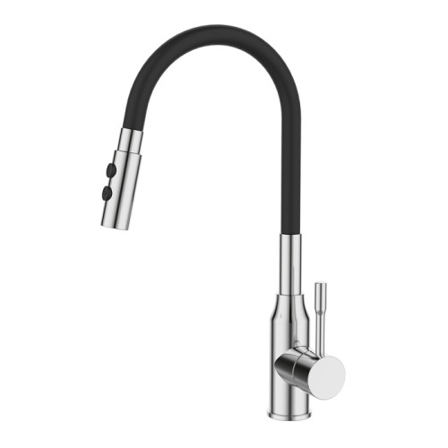 Смеситель Meal с контрастным черным изливом – демократичное решение для современной кухни с высокой функциональностью. Гибкий излив позволяет менять направление потока, расширяя рабочую область смесителя.