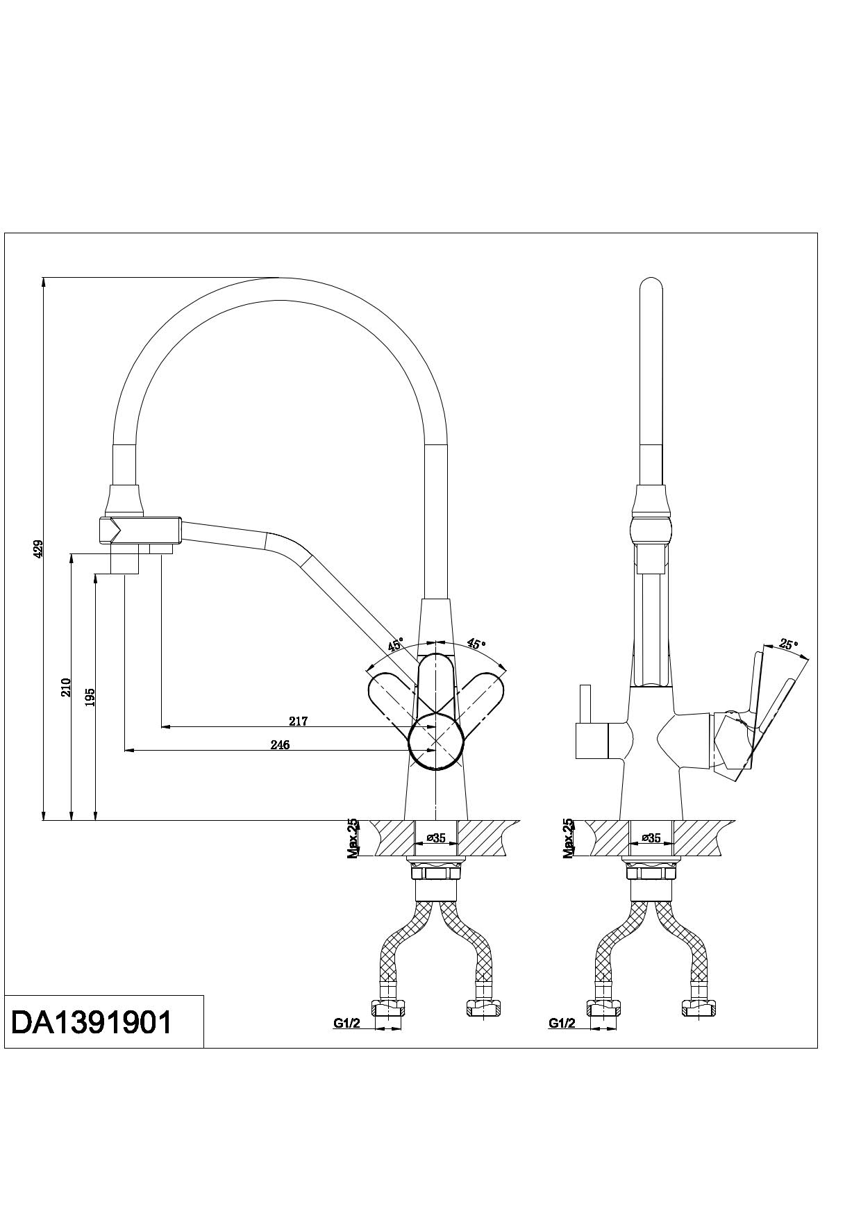 - Гибкая подводка 40 см идёт в комплекте для быстрой установки.