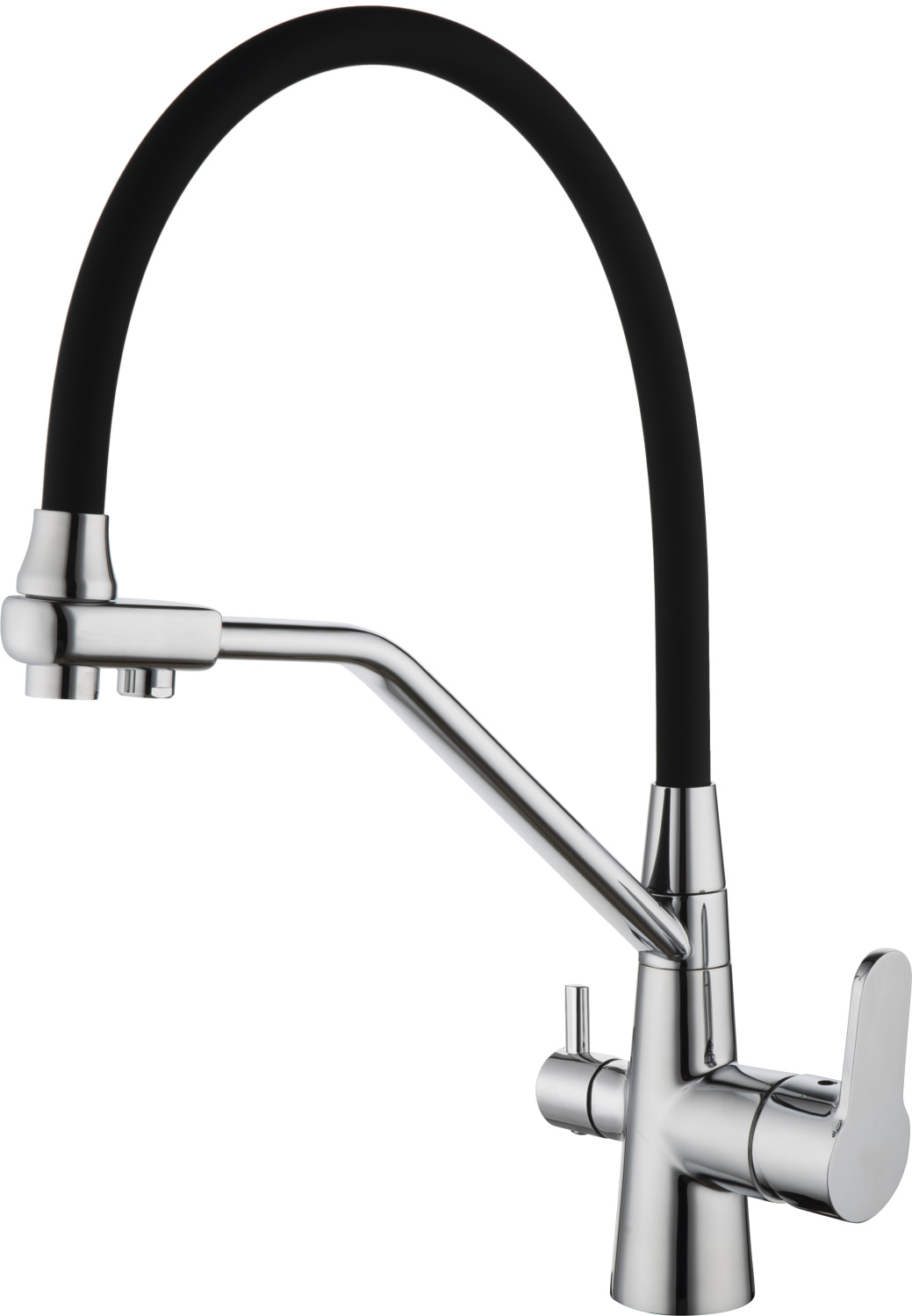 Универсальный дизайн с гибким изливом, надежный в эксплуатации, украсит любую кухню на долгие годы, а дополнительный канал для фильтра питьевой воды позволит пить чистую воду из под крана.