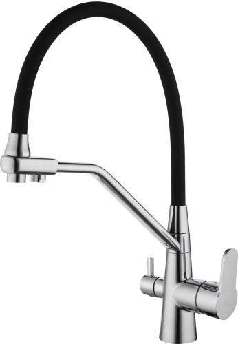 Смеситель для кухни с подключением к фильтру DK Rhein.Marx (DA1391901), гибкий излив, черный/хром