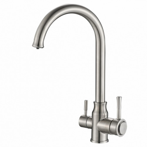 Смеситель под фильтр 2 в 1 для кухни модель SH 763 INOX представляет коллекцию смесителей Steel Hammer. Оригинальный классический дизайн в совокупности с удобными размерами кухонного смесителя позволяет использовать его в полной мере. Прекрасно гармонирует с кухонными мойками различных производителей.В смесителе применена технология "двойного канала", которая позволяет подключить питьевой фильтр сразу к смесителю. Вода подается не смешиваясь по разным каналам. Рукоятка управления водопроводной водой находится справа, управление питьевой водой - слева.