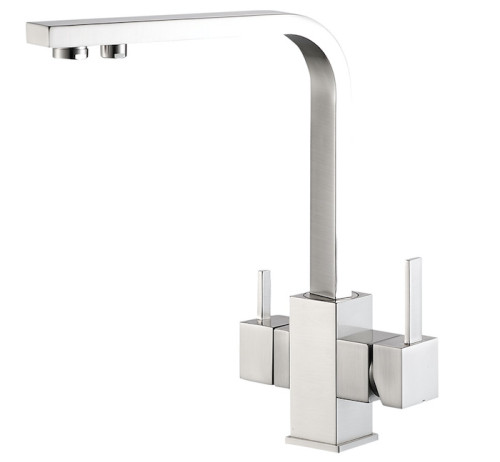 В смесителе применена технология "двойного канала", которая позволяет подключить питьевой фильтр сразу к смесителю. Вода подается не смешиваясь по разным каналам.