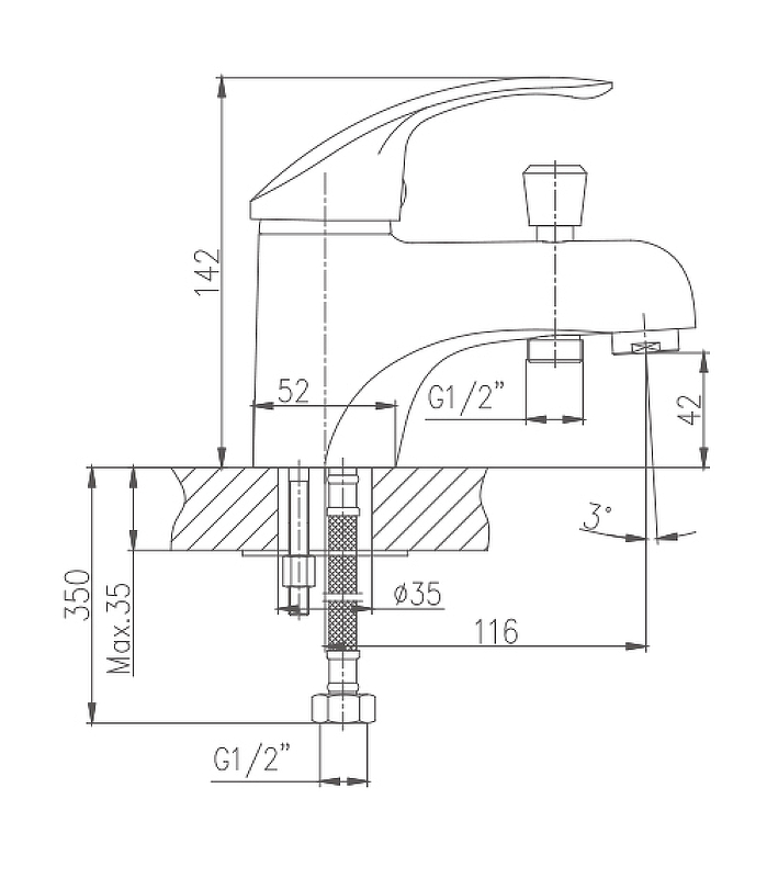 - Комплектация: смеситель,излив, душевой гарнитур, гибкая подводка