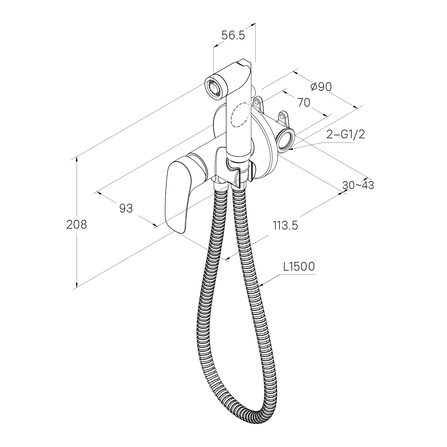 • Гигиеническая лейка из ABS-пластика и душевой шланг из ПВХ (1,5) идут в комплекте.